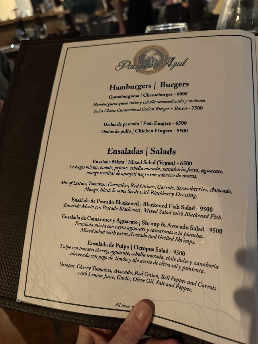 Pacifico Azul’s menu is a celebration of fresh, local ingredients and diverse flavors, making it a perfect destination for seafood lovers and those seeking a taste of Costa Rica’s rich culinary traditions.